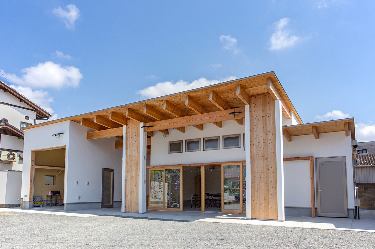 北八代自治会集会所は、集会室を半屋外空間が取り巻く空間構成に...